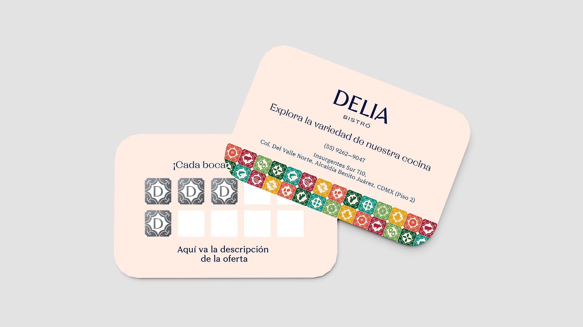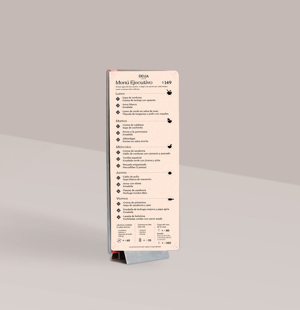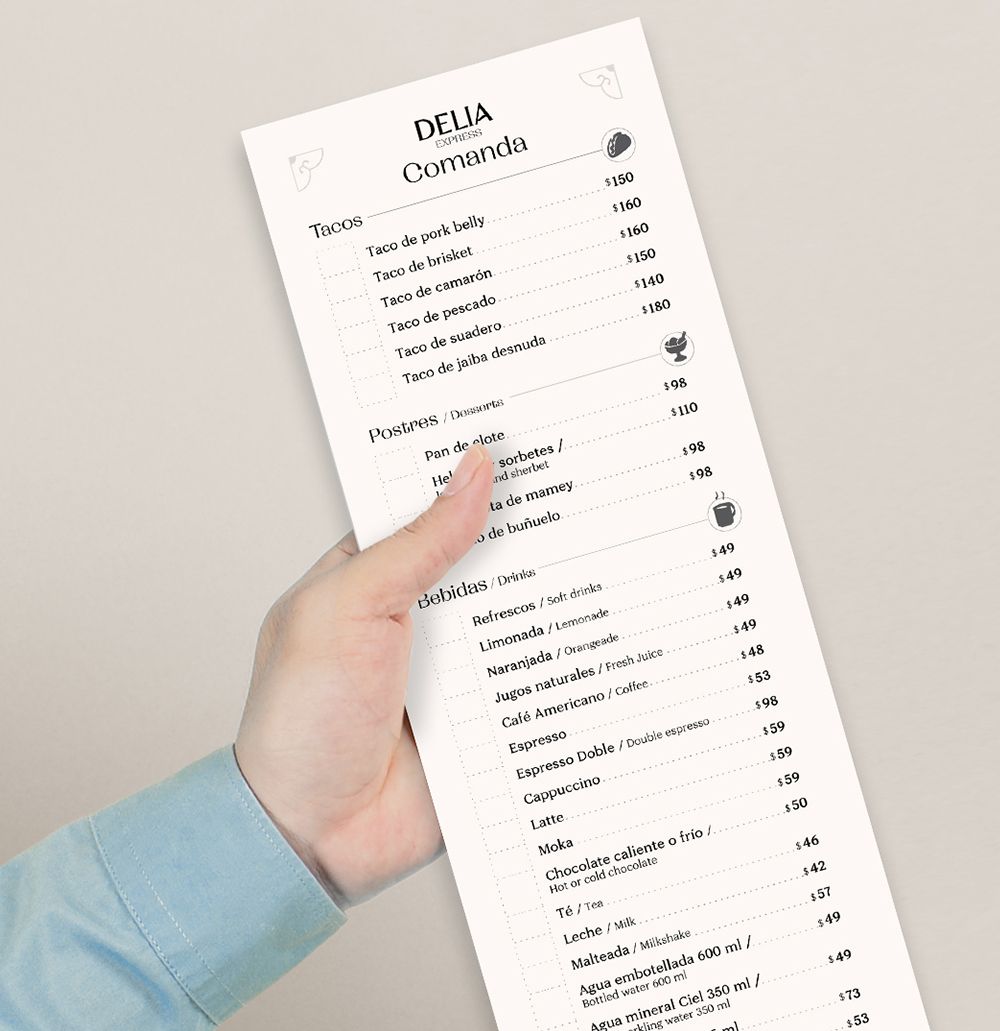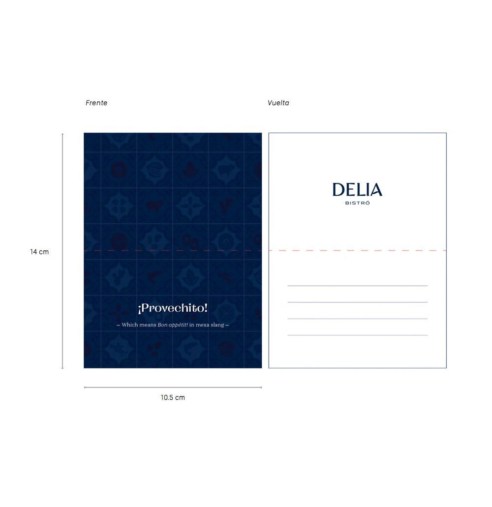 Utilizamos como punto de partida conceptos ampliamente reconocidos de la cultura mexicana para generar una identidad única que dote de originalidad a Delia y sea el complemento perfecto para la oferta gastronómica que ofrecen. Más allá de lugares comunes sin perder la esencia de México para su fácil traslado y tropicalización en otros mercados