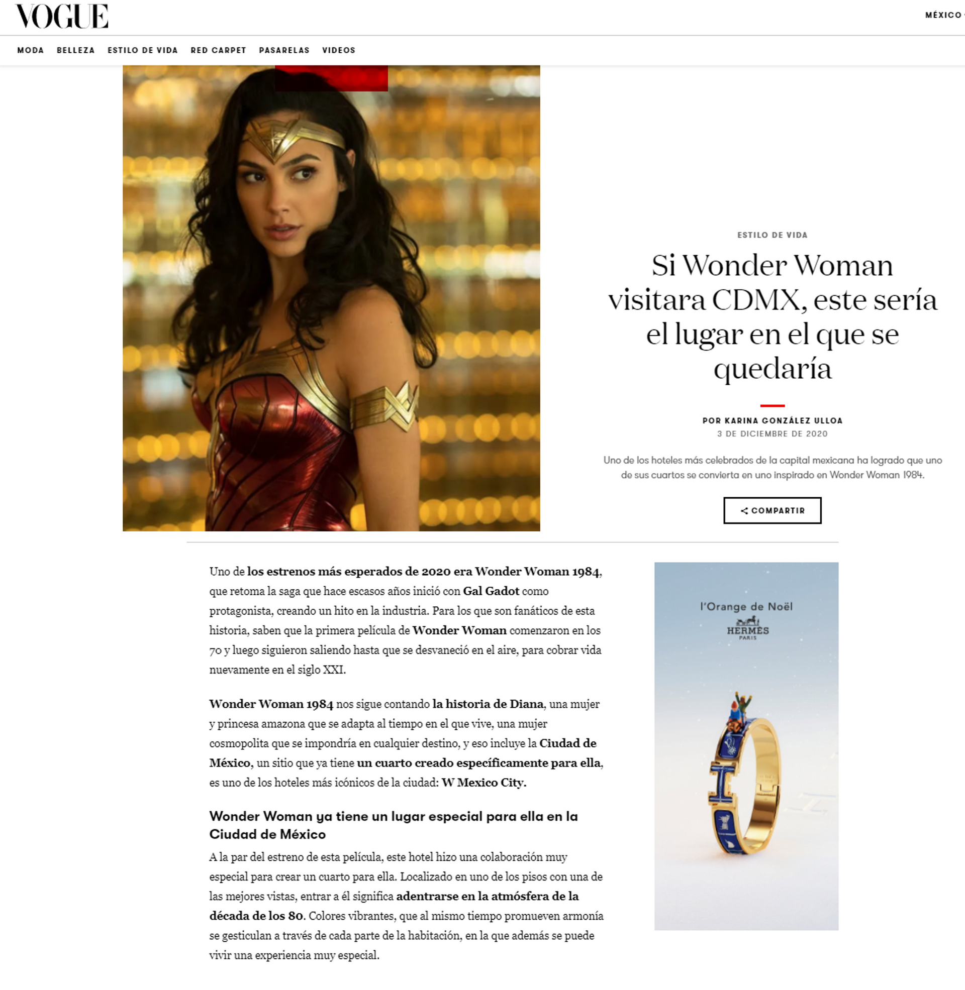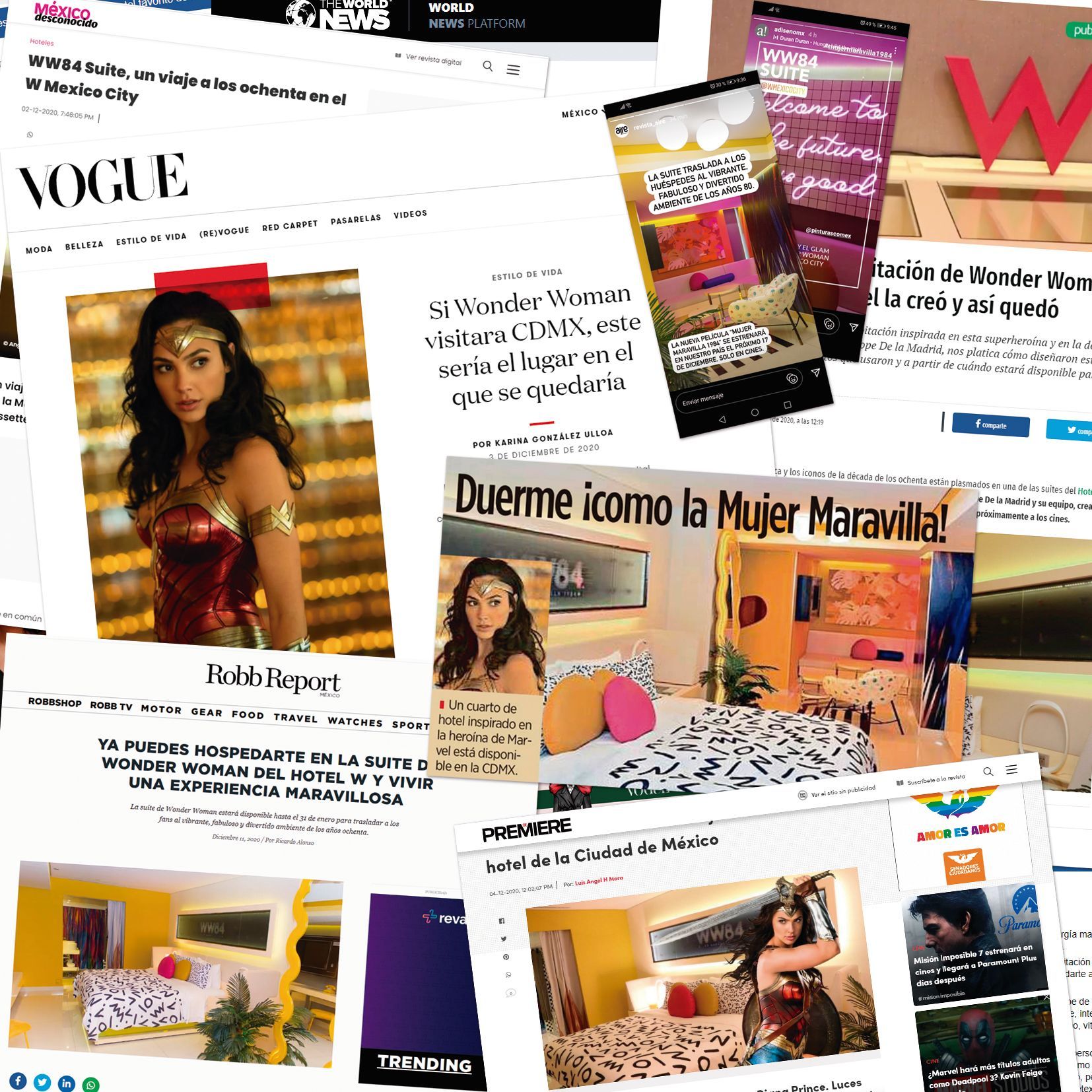Inspired by the Comex brand's color of the year, which by the way, was the basis for the film's color palette. We presented Gal Gadot and Patty Jenkins producers of the film, the idea of turning one of the hotel rooms into an Instagram opportunity for those who wanted to book and travel to the 80's and feel part of the movie, supported by Mexico's Warner Bros. team.